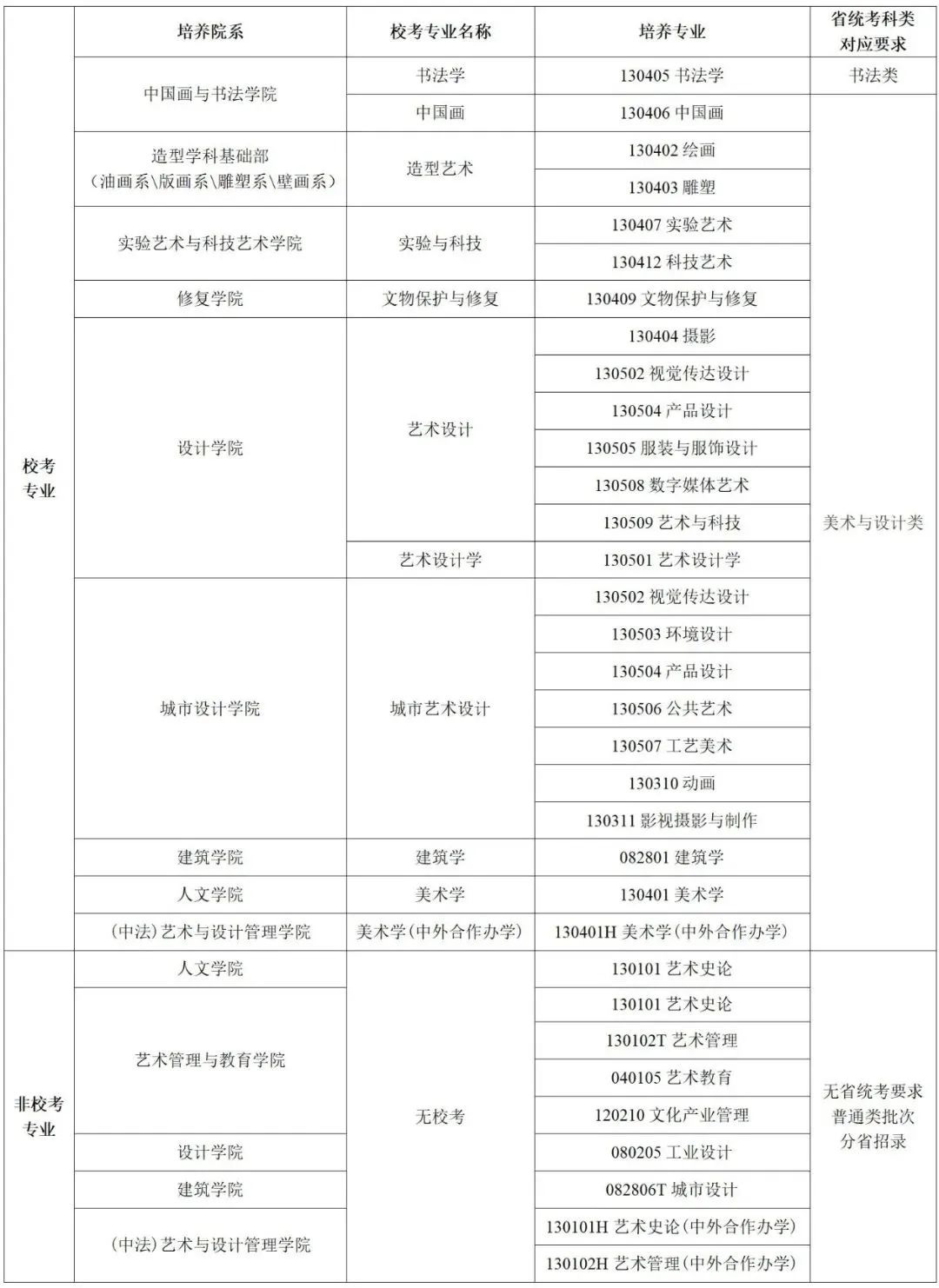 一、中央美術(shù)學(xué)院2024年本科招生專業(yè)省統(tǒng)考科類對應(yīng)要求