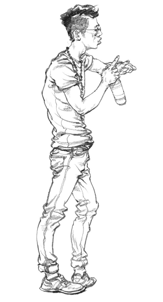 鋼筆畫(簽字筆)在紙上線條一清二楚,平滑流暢;鉛筆富有深淺、粗細、虛實的變化,表現層次豐富易于涂改;炭筆畫出的線條結實而飽滿,黑白對比強烈,直立用筆與側向用筆并用,能產生極佳的藝術效果。