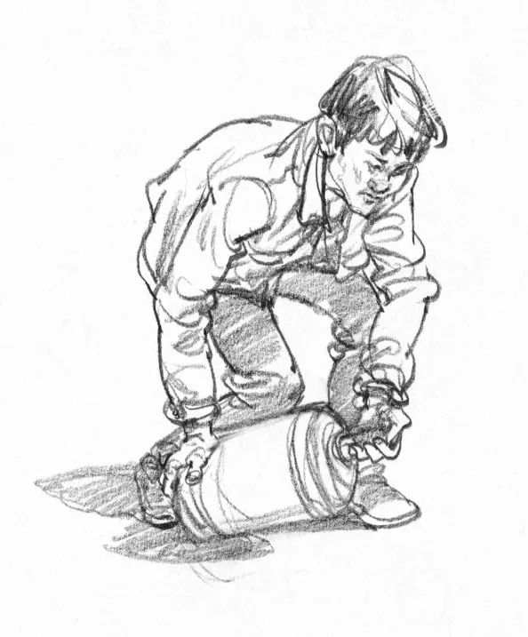 四肢就是雙手和雙腿。畫人物前一定要用一豎、二橫、三體積、四肢的方法對右圖人物動態進行分析,并用體塊的方法概括人體的基本結構。