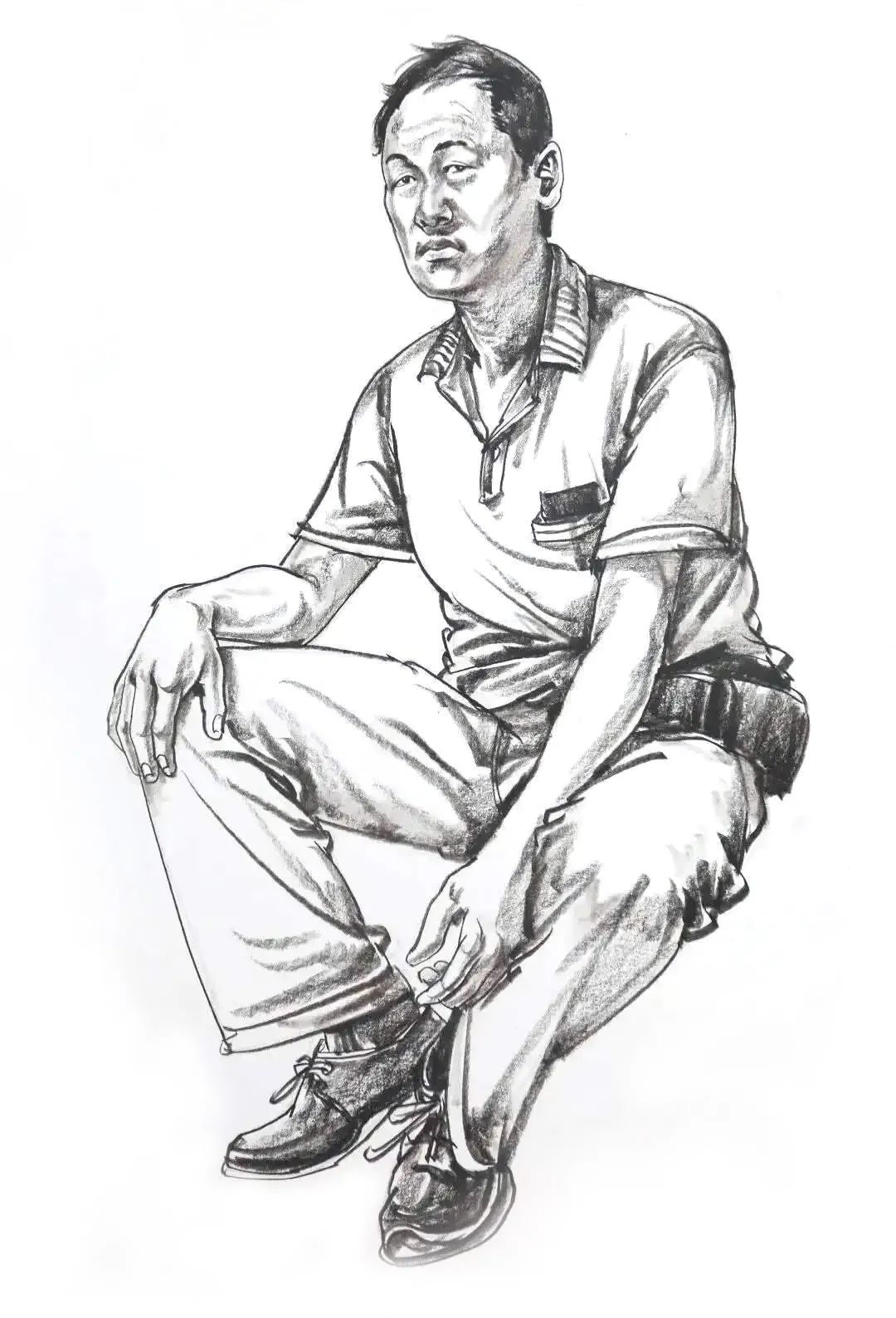 ①快寫:有兩種含義。一是模特姿勢處于靜止狀態,要求在相對更短的時間,如一、二分鐘之內作畫。再者模特處于動態中,進行快速繪畫。技術難度較高,在平時練習時,卻不容忽視。因為它更能培養畫者整體觀察的習慣,以及快速把握對象的造型能力。