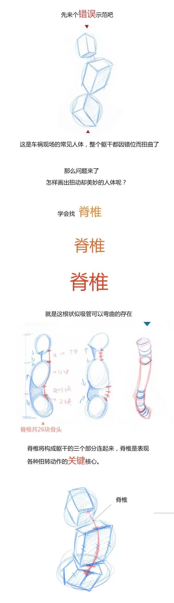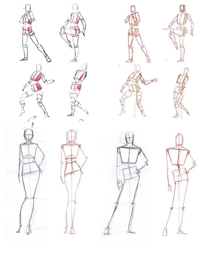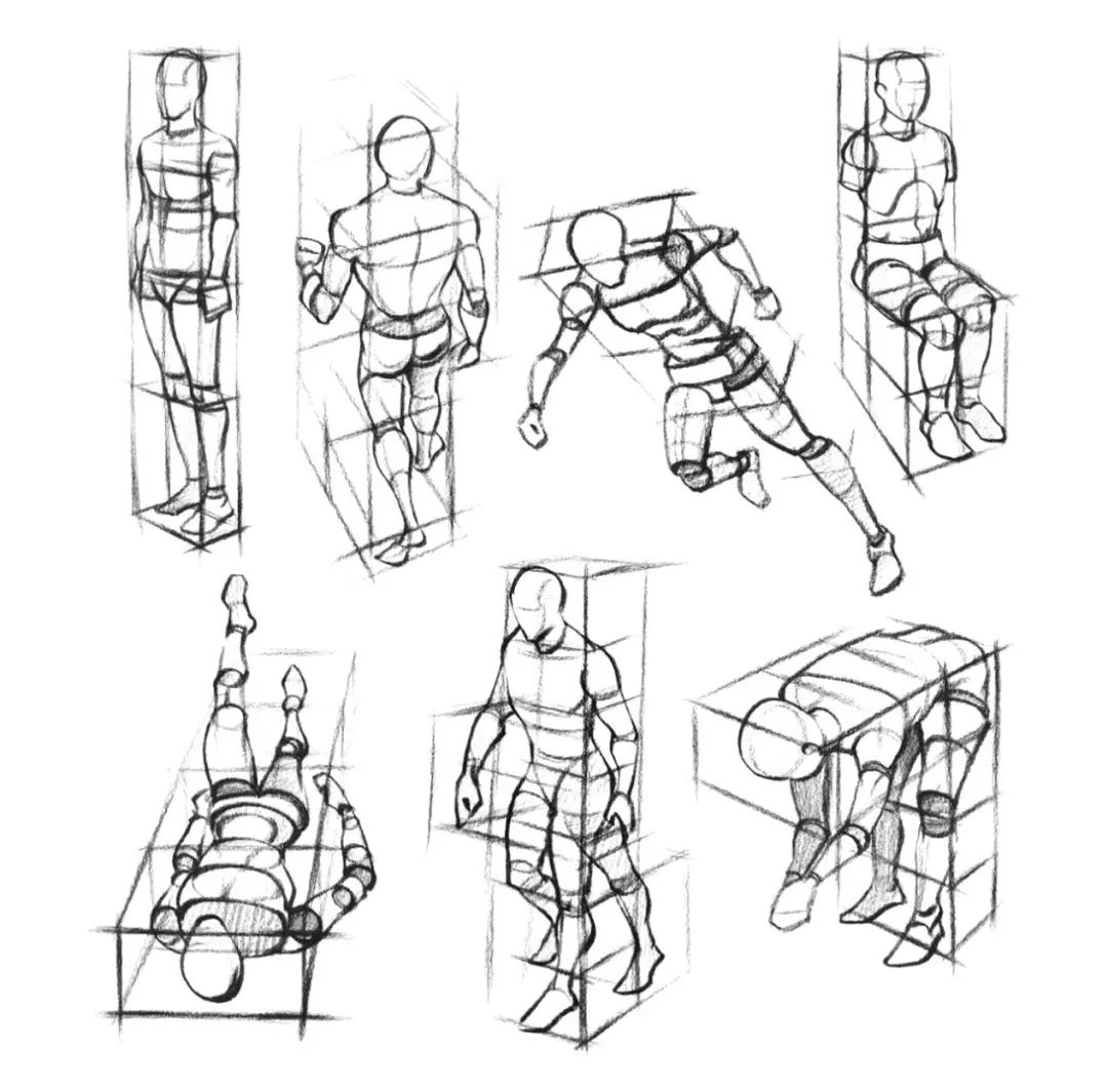 可能大家在在購買一些人體結構課程或者書籍的時候,看過類似下圖這種,其實它們身上所攜帶的形勢更多一些,比小木人更加復雜,很多內容看似即學即用,但是因為體塊展示不夠明顯,而小木人體塊更加簡單,練習簡單化的東西對初學者掌控人體結構理解更透徹。