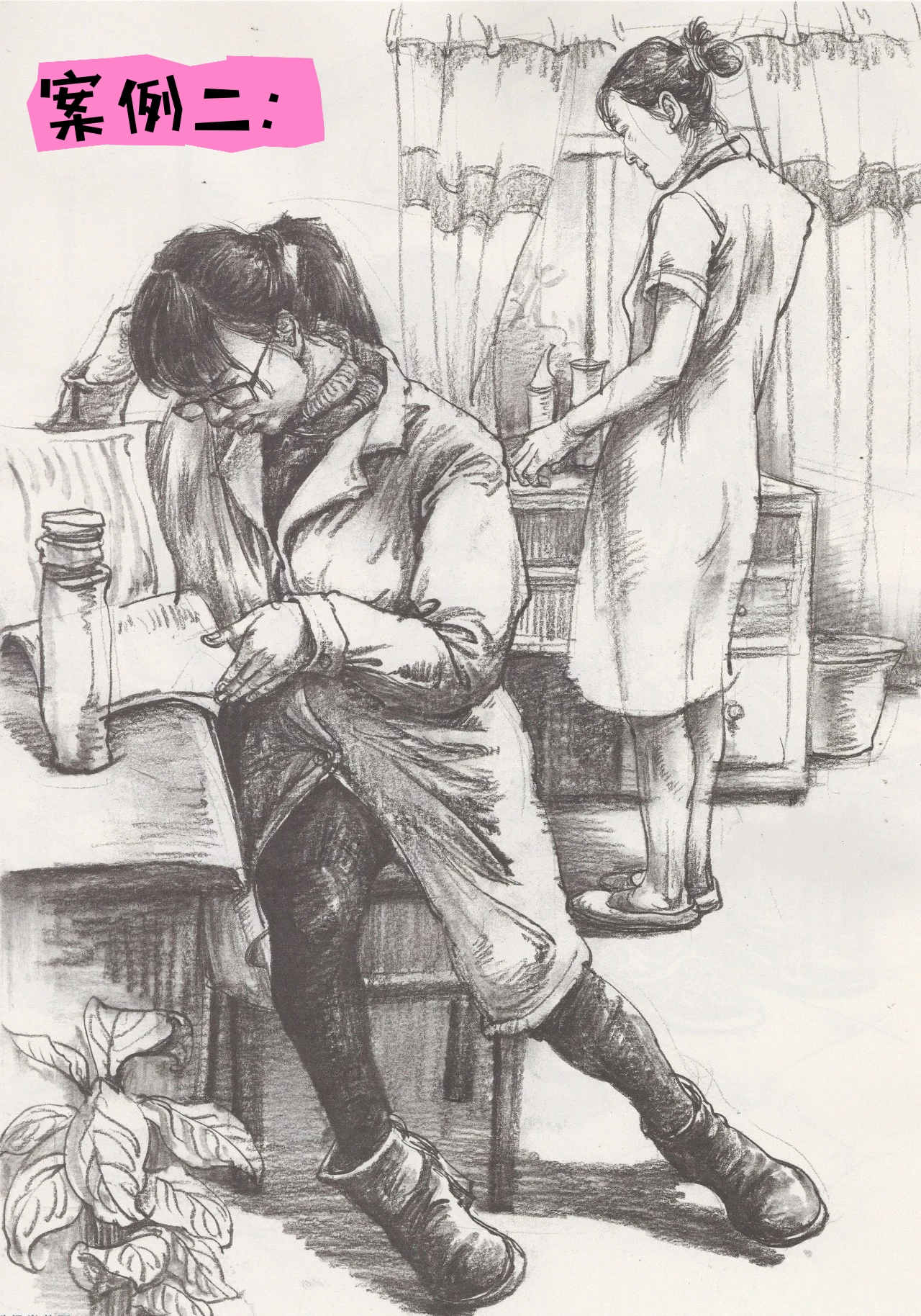 ?案例二:坐姿女青年安排在了視覺中心偏左的位置,次要人物則放到主要人物的后面相對弱化處理,形成節奏。