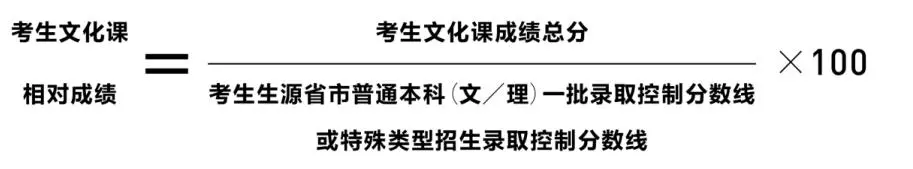 所有專業(yè)考生文化課成績(jī)總分須進(jìn)行統(tǒng)一折算,并按折算后的文化課相對(duì)成績(jī)文理科統(tǒng)一劃線錄取。考生相對(duì)成績(jī)=考生文化課成績(jī)總分÷考生所在省本科(文/理)一批線×100,相對(duì)成績(jī)四舍五入保留至小數(shù)點(diǎn)后三位。