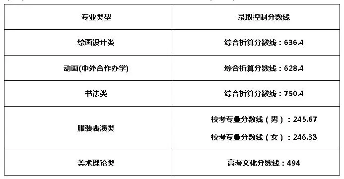 (一)湖北美術學院2021年普通本科招生錄取控制分數線(外省)如下: