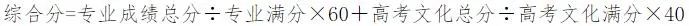 綜合分=專業(yè)總分÷專業(yè)滿分×60+高考文化總分÷高考文化滿分×40