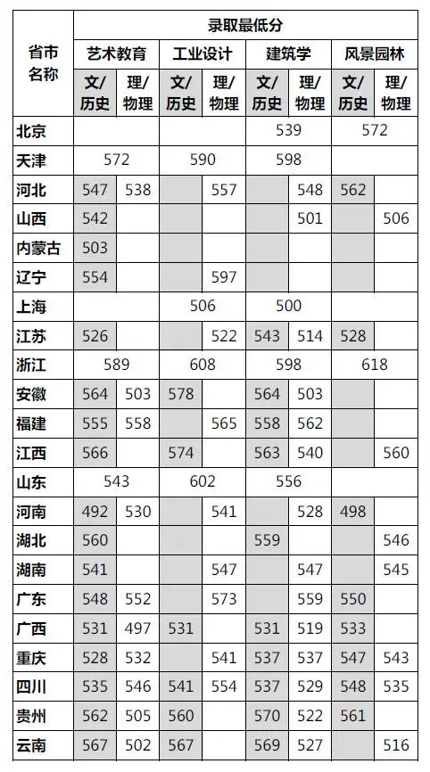 2021年四川美術學院各專業(yè)錄取分數(shù)線: