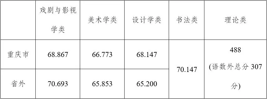 2020年四川美術學院各專業(yè)錄取分數(shù)線: