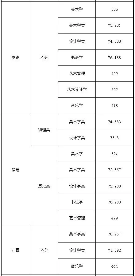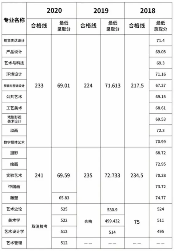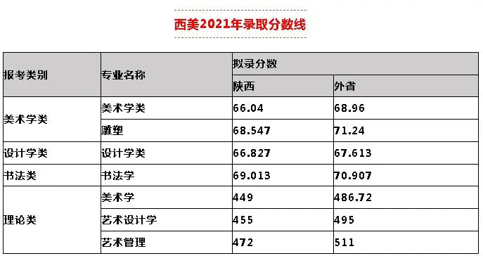 2021年西安美術學院各專業(yè)錄取分數(shù)線: