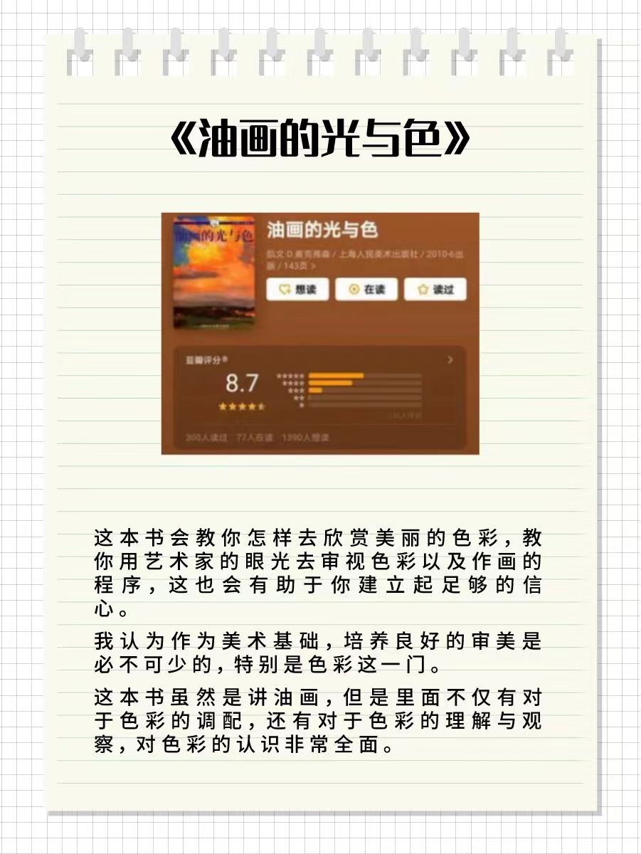 這本書教你怎么樣用藝術家的角度欣賞色彩,作為美術基礎,培養良好審美必不可少的一門課,這本書雖然是講油畫,里面不僅有對于色彩的調配,還有對于色彩的理解和觀察,以及色彩認識的全面。