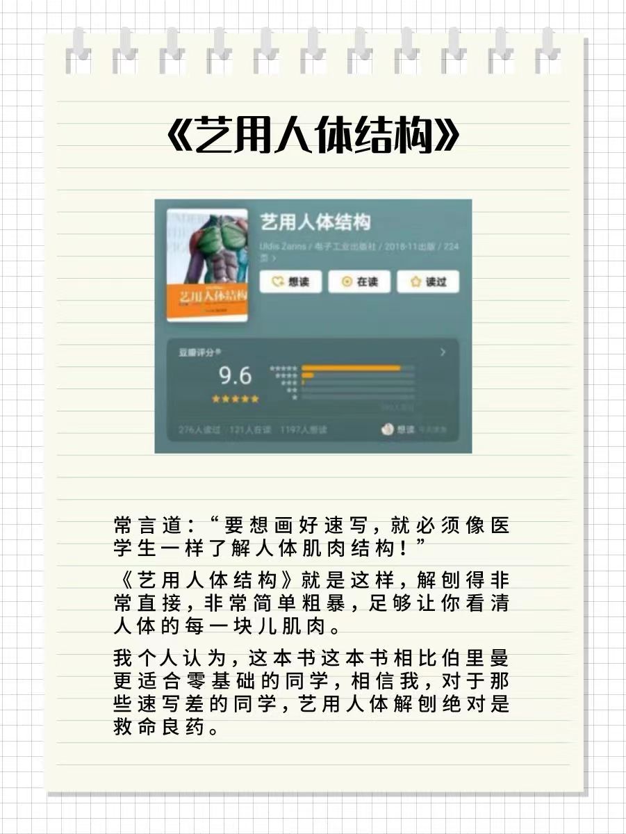 想要畫好速寫,就必須像醫學生一樣了解人體肌肉結構,《藝用人體結構》解剖十分直接,簡單粗暴,足夠讓你看清人體的每一塊兒肌肉。更適合零基礎的同學。