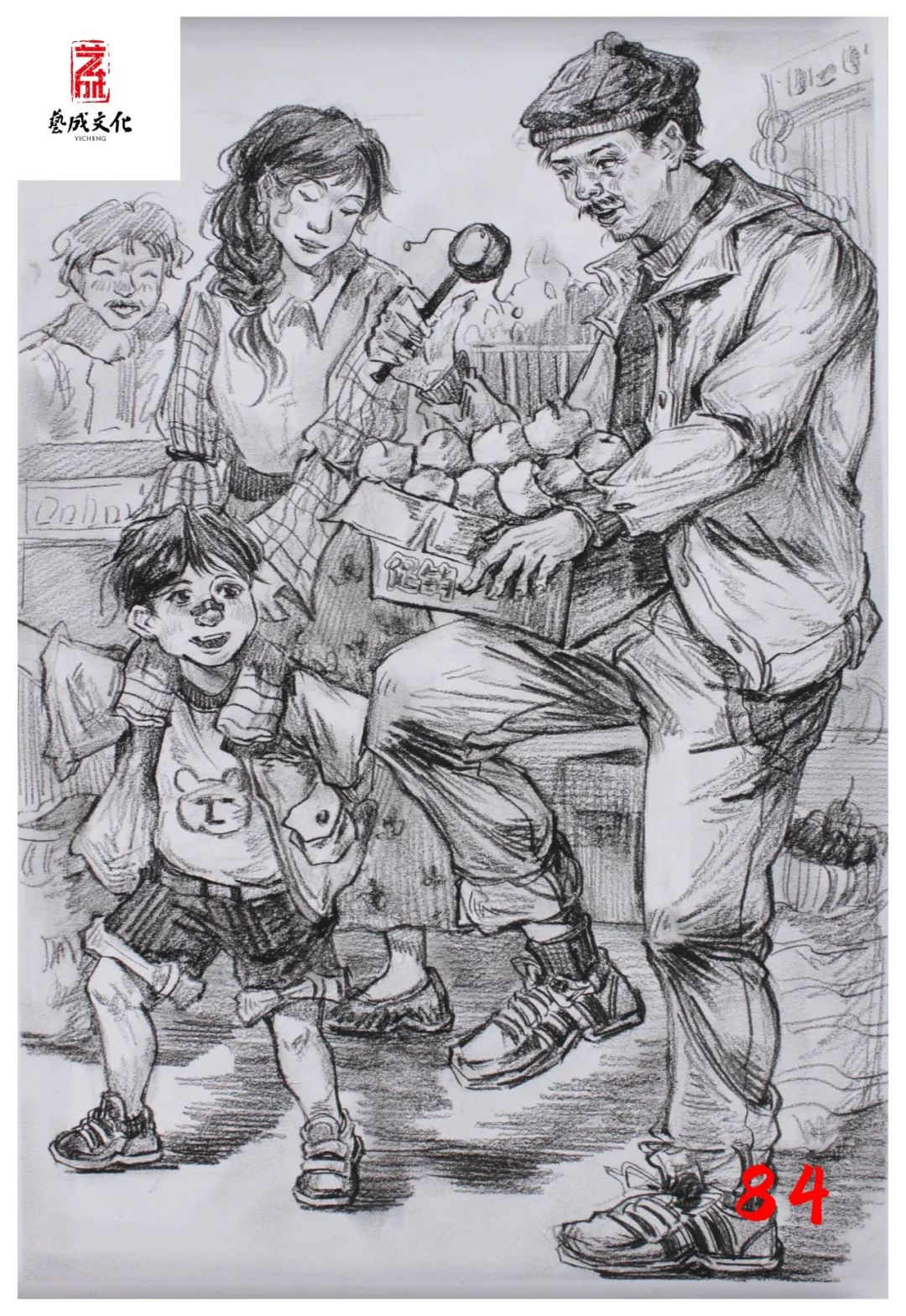解析:試題要求你創造豐收場景,測試素材中人物的動態比例略有夸張。表現手法與我們的對比草圖略有不同。參考內容較少。主要目標是考驗考生的敏感度和生活記憶能力,人物注重動態比例特征,大量的默寫元素也幫助考生發揮自己的感受和想象力,創作出更好的作品!